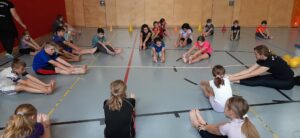 Über das Schuljahr verteilt turnte der Sportverein „Gymnastics“ mit allen Kindern der Schule. Nach einem schnellen Aufwärmspiel durften die Kinder einen ansprechenden Stationenbetrieb durchlaufen. Abgerundet wurden die Einheiten von einem professionellen Dehnungsprogramm.
